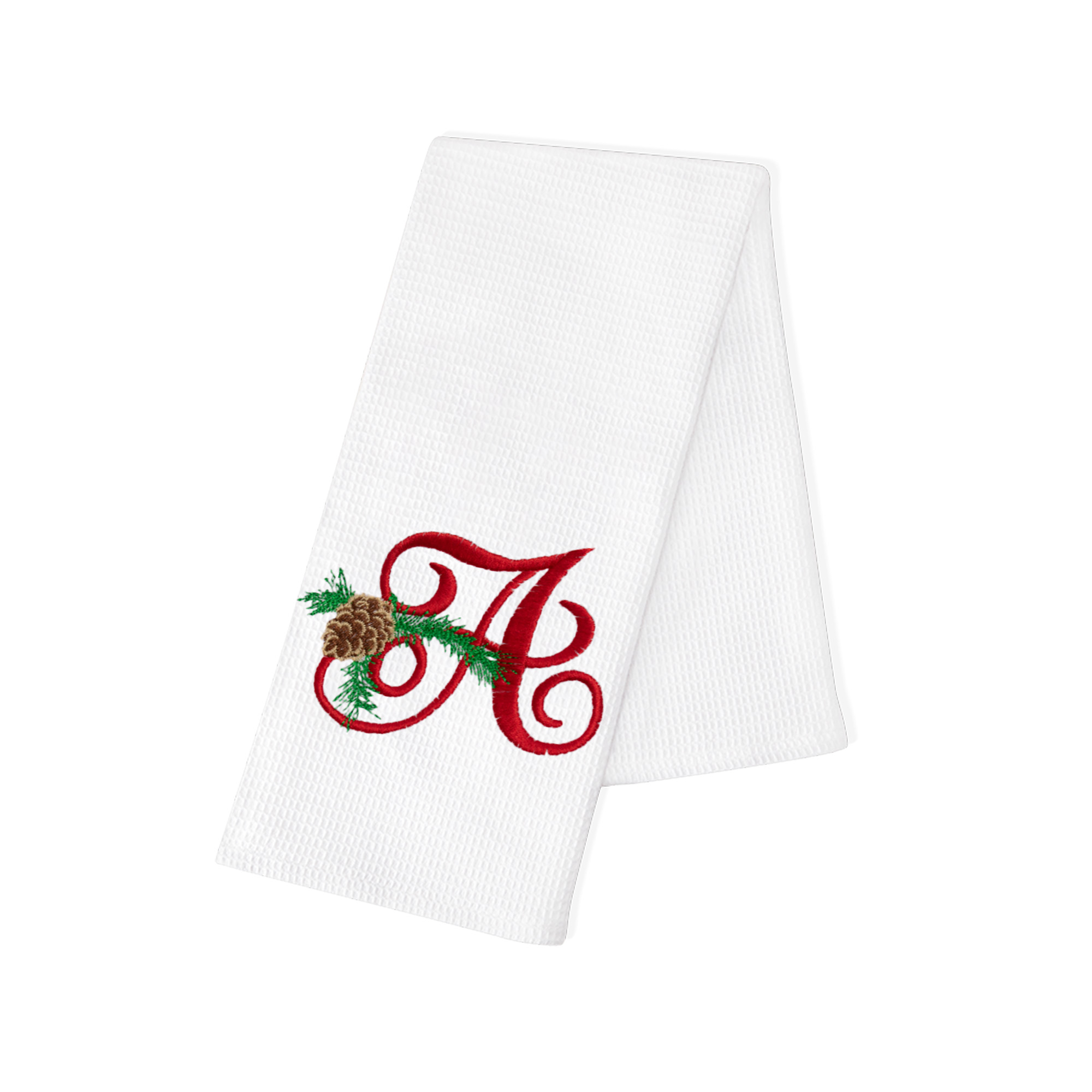 Christmas Vibe - This waffle weave dish towel features a festive pine cone and branch embroidery paired with your custom initial, bringing a warm and elegant Christmas touch to any kitchen. The timeless monogram design complements both rustic and modern holiday décor styles.