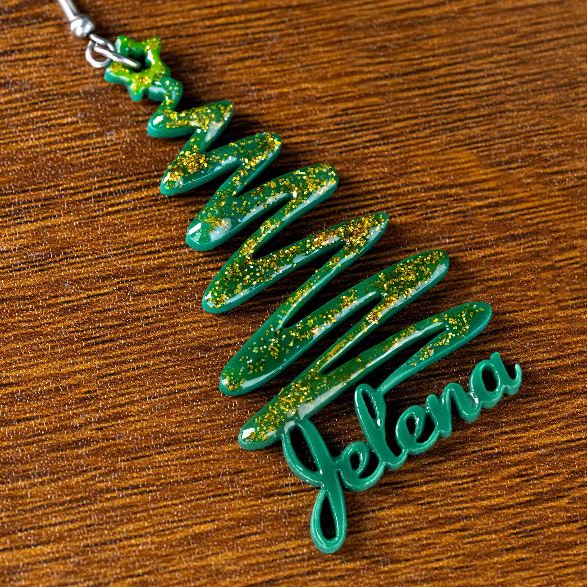 Custom Name Glitter Christmas Tree Dangle Earrings with Gold Star |