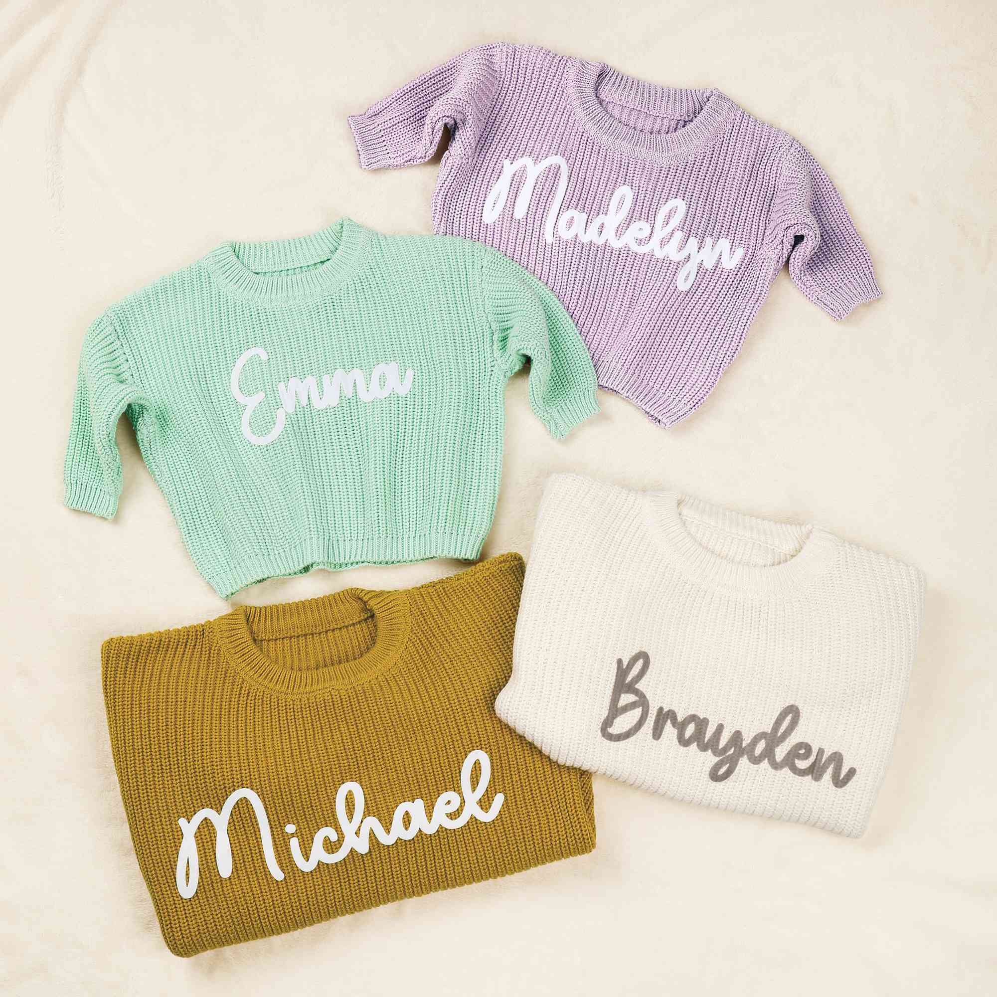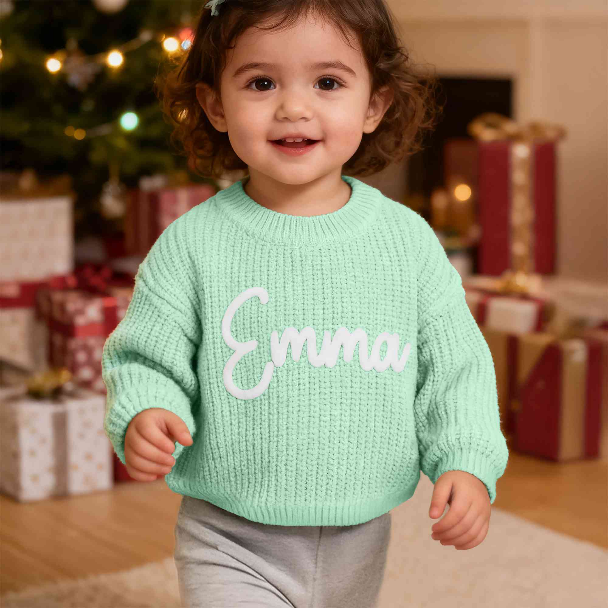 Customization - This baby sweater can be personalized with your child’s name, turning it into a sweet keepsake that celebrates every stage of their growth. Offered in a range of soft colors, it combines comfort with a playful touch, giving each sweater its own special meaning.
